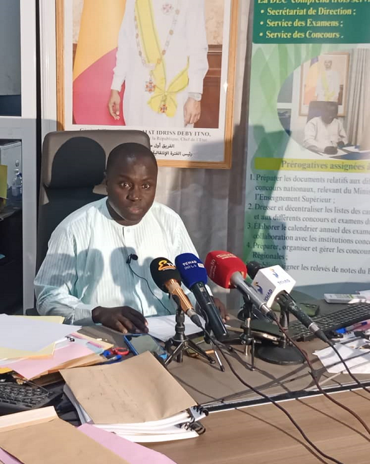 Le Directeur des examens et concours de l’Office national des examens et concours du supérieur (Onecs) Abakar Mahamat Hassaballah, a fait, au cours d’un point de presse, le bilan de l’enrôlement biométrique de 104 440 candidats au bac session de juin 2025 et à déroulé le calendrier des activités.