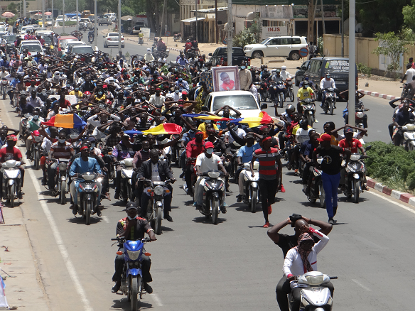 Le cortège impressionnant poursuit son chemin. “Si les gens s’engageaient depuis ainsi, comme c’est le cas aujourd’hui, nous auront déjà arraché notre liberté. Je suis venu de Goudji pour accompagner les martyrs à leur dernière demeure”, témoigne un adulte. Arrivé devant le commissariat du 7ème arrondissement, les jeunes n’ont pas pu contenir leur colère. Aux agents de sécurité postés devant le commissariat, ils ont lancé : “Assassins ! Assassins ! Assassins !”. Ils sont vite suppliés par leur leader de continuer le chemin. Au rond-point à double-voie, c’est tout un dispositif militaire qui est installé avec plusieurs agents postés en bordure de l’avenue Jacques Nadingar et dans la cour de la station Total. Là encore, les jeunes leur jettent à la figure de façon sporadique, quelques bouteilles d’eau mais sans accrochage.