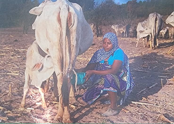 Observer des images de cette femme qui revient de la brousse avec des fagots sur la tête, en train de traverser un cours d’eau à gué, pendant qu’un troupeau de bœufs également traverse ce même cours d’eau en sens inverse ; cette autre femme enfant au dos et un secco sur la tête, traversant également d’un autre coté ; ou encore ces trois femmes dans l’eau jusqu’à la taille, récipients et nasses sur la tête du côté de Fianga dans le Lac Tikem ; cette femme de Fianga à vélo, chargé des sacs de produits agricoles, en route pour le marché ; une vache dans un campement nomade au pied d‘une colline du village Erdé, qui partage ses pis entre son veau et cette dame récipient en main, qui en extrait de l’autre côté pour la consommation directe ou la transformation future en produit laitier destiné à la vente ; pendant qu’au village veaux et enfants se retrouvent dans un environnement proche sous un étable, non loin des cases ; cette scène de vie au village où les femmes des deux communautés se retrouvent toutes autour d’un puits à ciel ouvert à Bissimafou ; ce boucher dodu du marché de Léré présentant fièrement un quartier de viande de bœuf devant son étal ; ce berger à la tête d’un troupeau se dirigeant vers Pala, avec son panneau solaire suspendu sur son côté comme une gibecière ; cette dame au lever du soleil au bord du Lac Léré en train de retourner la terre avec un daba pour faire des planches de maraîchage, pendant que dans l’eau, un jeune pêcheur déroule son filet non loin d’un hippopotame qui broute tranquillement l’herbe, etc. Tel est le panorama que décrivent ces instants de vie quotidienne, saisis par ces trois photographes et documentés, pendant deux semaines. Des instants qui établissent les liens entre agriculteurs et éleveurs et l’impact du changement climatique sur la transhumance et la biodiversité, ainsi que l’interdépendance et la richesse culturelle des communautés rurales tchadiennes.