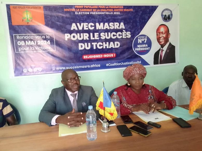 Par un point de presse organisé ce mercredi 17 avril 2024, le parti Front populaire pour la fédération (Fpf) a annoncé qu’il soutient le candidat de la “Coalition Justice-Égalité”, Dr Masra Succès à l’élection présidentielle du 6 mai prochain.