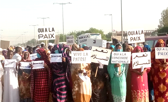 Ce mercredi 12 mai 2021, le Tchad a montré au monde qu’il est pays à deux visages. Depuis les manifestations organisées contre le 6ème mandat de Déby jusqu’à celles contre l’accaparement du pouvoir par le Conseil militaire de transition (Cmt), une manifestation n’a jamais été autorisée, ni encadrée par les forces de l’ordre. Il a fallu que des organisations, plateformes et partis politiques pro Cmt, organisent une marche pacifique pour qu’elle soit autorisée et encadrée par les forces de l’ordre, marchant aux côtés des manifestants. Deux colonnes des marcheurs ont eu pour itinéraire le tronçon rond-point Hamama, Palais du 15 janvier ce mercredi 12 mai, pour soutenir le Cmt et pour la paix. “Oui à la paix, oui à la concorde nationale, non à la guerre, etc” ont scandé les marcheurs, drapeau du Tchad en main. Les quartiers ayant manifesté leur soutien au Cmt à travers cette marche n’ont certainement pas pris part aux autres marches pour protester contre la prise du pouvoir par les armes.