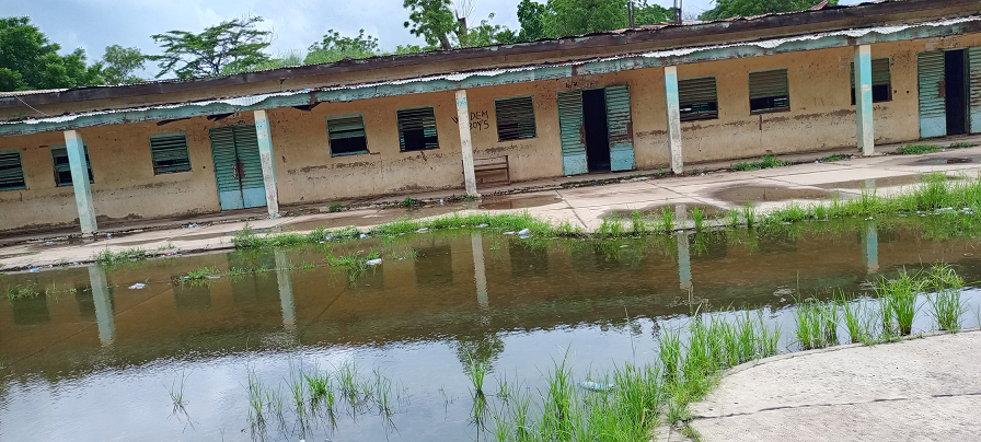 Pour cette journée, accéder au bureau du proviseur du lycée 1 est quasi impossible. Les eaux des récurrentes pluies sous le ciel généreux de cette année ont fait leur lit sur le passage. Il faut contourner derrière les salles de classe pour y parvenir. Des fenêtres n’existent pratiquement plus dans la majeure partie des salles de classe. Des plafonds enlevés ; d’autres en état de dégradation avancée ; des toilettes crasseuses abandonnées par manque d’entretien. Certaines salles de classe sont délaissées à la merci des enfants et des jeunes qui y défèquent. Plus d’une dizaine d’habitations sont construites dans l’enceinte du lycée. En dépit de tout cela, certains pans de ce grand lycée ressemblent à un dépotoir.