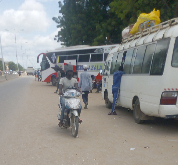 Ces mauvaises pratiques s’observent le long de la voie de contournement qui côtoie le marché de Dembé et débouche au Palais du 15 janvier. Les espaces riverains non occupés n’échappent pas à l’engorgement des bus.