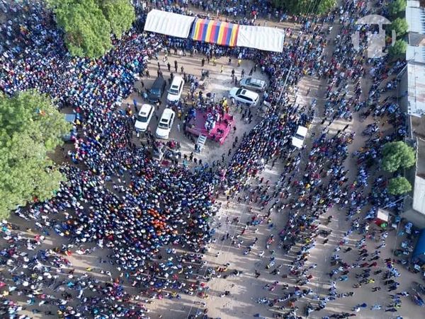 Le Président du parti les Transformateurs, Dr Succès Masra prend un bain de foule de ses partisans, militants et sympathisants à l’espace du Balcon de l’espoir, ce dimanche 19 novembre 2023.