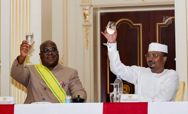 Les deux présidents, Félix Antoine Tshisekedi Tshilombo et Mahamat Idriss Déby Itno, lèvent leurs verres et trinquent. C’est l’expression d’une immense joie pour la victoire au prix du sang de nombreux tchadiens, donc d’une mission accomplie. Tout est accompli, peu importe la manière. Car, dit-on, en politique, tous les moyens sont bons, pourvu qu’ils soient efficaces pour atteindre l’objectif. Et l’objectif, il est celui de maintenir le fils qui a confisqué le pourvoir à la mort de son père dans des situations jusque-là non élucidées, d’autant plus que l’enquête annoncée n’a jamais eu lieu. Cet objectif, c’était le rôle à jouer, donné au président congolais qui devrait accompagner le fiston à réussir le plan de succession dynastique acté par le parrain français, Emmanuel Macron. Il est donc important et opportun, à l’occasion de cette cérémonie de réjouissance qui a fait déplacer le Congolais Félix Antoine Tshisekedi de N’Djaména, rappeler le péril traversé pour atteindre le résultat victorieux qui se célèbre ce jour.