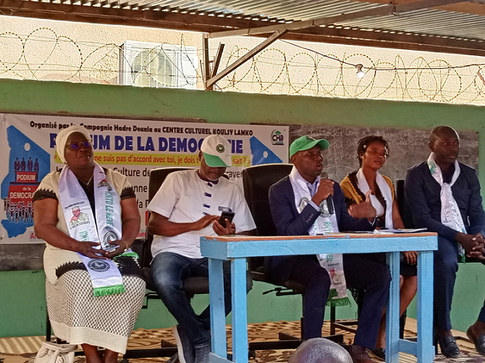 Avec pour slogan : « Même si je ne suis pas d’accord avec toi, je dois t’écouter. Qui sait? », inspiré de la chanson « Al-moussama » de l’artiste Talino Manu, qui affirme qu’un adversaire politique n’est pas un ennemi, le Podium de la Démocratie a contribué à inculquer la culture de la paix aux jeunes à travers une éducation citoyenne et patriotique axée sur les valeurs démocratiques.