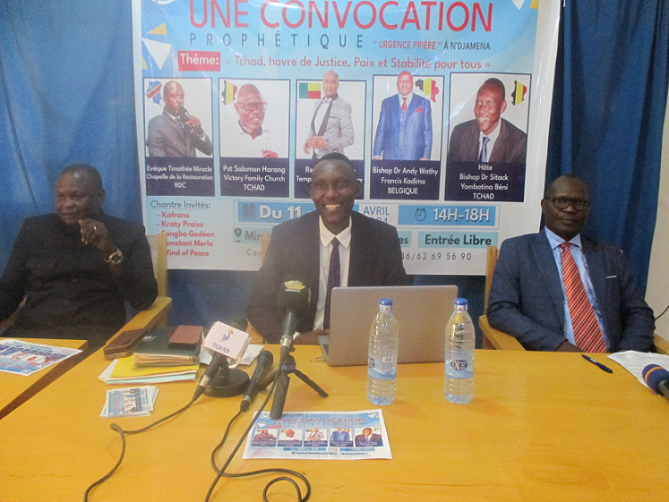 L’annonce est faite lors d’une conférence de presse ce 9 avril 2024, animée par les hommes de Dieu, comme ils se définissent, Bishop Sitack Yombatina Béni, les pasteurs Salomon Harang et Banadji Esaïe. Le thème de ces trois jours de prières et d’enseignement est : “Tchad, havre de justice, paix et stabilité pour tous”. Toute la population est conviée, quelle que soit sa religion à ces moments, afin de vulgariser les enseignements qui seront donnés, ainsi que les prières allant dans le sens de la transformation nationale. Pendant ces trois jours, Dieu sera au rendez-vous, indique pasteur Salomon. “C’est un appel à tous les chrétiens du Tchad et les autres, pour prendre part à cette prière. L’Eglise ne cherche pas le pouvoir mais la santé du peuple”, a renchéri le pasteur Esaïe qui lui a emboité le pas. Les intervenants sont : Bishop Sitack Yombatina Béni (Tchad), Bishop Andy Wathy Françis (Belgique), Révérend Elvis Dagba Temple palais de gloire (Bénin), pasteur Salomon Harang Victory family church (Tchad), Eveque Timothée Miracle, Chapelle de la Restauration (RDC)